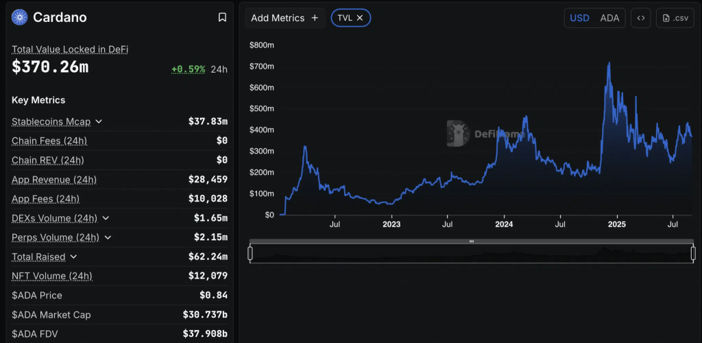 Its DeFi scene highlighted similar grit. The total value locked (TVL) in Cardano’s financial protocols hit a respectable $349 million by mid-August 2025. That figure even spiked to $431 million in June after connecting with the Base network – A sign that real capital may be finding a home here.
